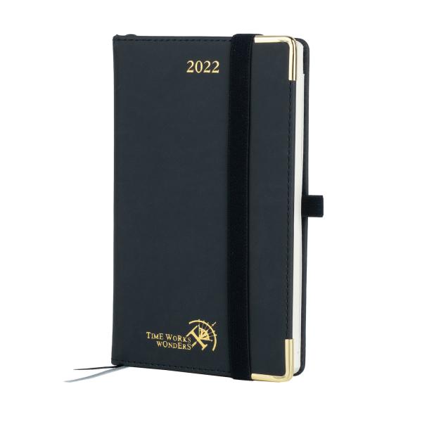 Black Leatherette Cover Small Academic Planner With Hourly Schedule Images |