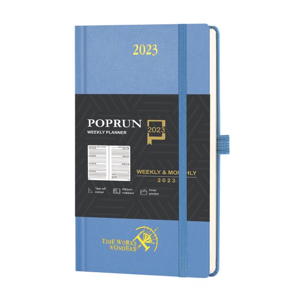 Hard Cover Poprun Blue Weekly Planner 2023 Customization Agenda For Student Images |